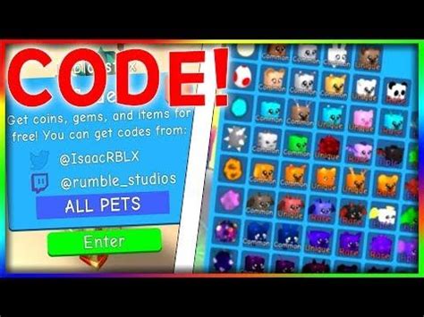 Pet Swarm Simulator Codes| How To Redeem? It's quite simple to claim codes, click on the Twitter icon to the right to open the code menu. RBLX Codes is a Roblox code website run by the popular roblox code youtuber, Gaming Dan, we keep our pages updated to show you all the newest working...